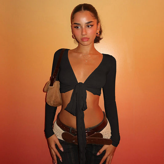 Haut cache-cœur à manches longues et décolleté en V profond DesireTie™