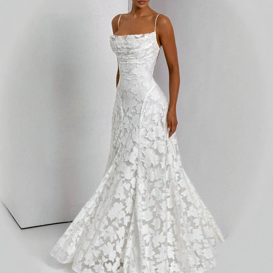 • Robe dos nu à nœud en jacquard BlushBelle™